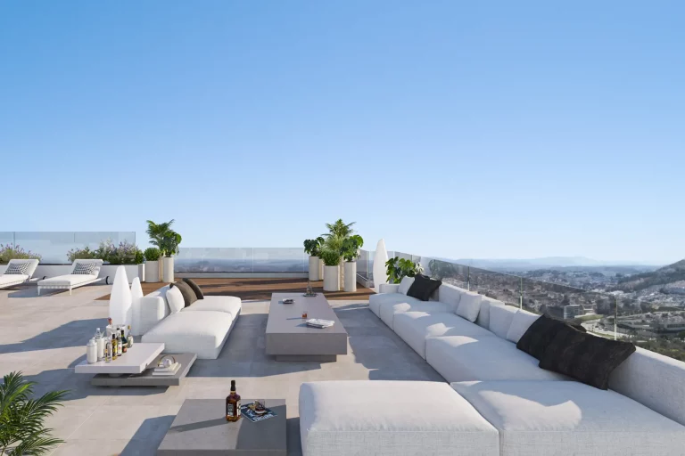 These luxury apartments and penthouses in Mijas Costa offer areas for meditation, yoga or pilates, a gym, a heated indoor pool, and a jacuzzi.